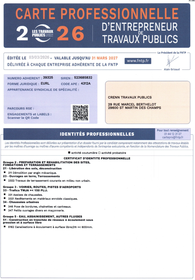 CARTE PROFESSIONNELLE FRTP